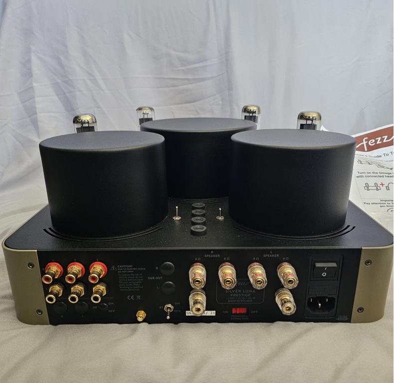 Fezz Audio Silver Luna Prestige EVO is an extremely versatile push-pull stereo integrated tube amplifier. Output tubes are the legendary EL34, and a mode switch can choose either tetrode or pentode operation; the input tubes are 12AX7/ ECC83, and each unit is shipped with another pair of input tubes, type 6N2P. Four configurations are possible with the mode switch and choice of input tubes, allowing the amp’s sound signature to be tailored to the user’s preference. Silver Luna Prestige has three RCA inputs, and utilizes Toroidy toroidal power and output transformers for low noise and amazing dynamic abilities. Its 35 watts per channel allow a wide choice of speakers.
