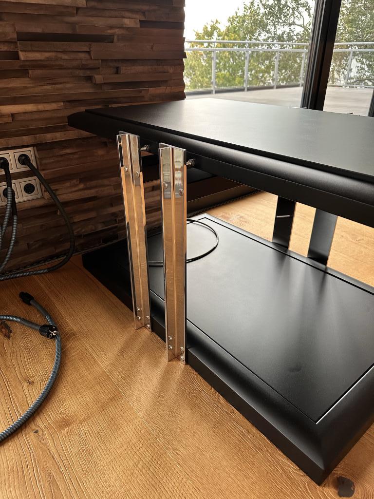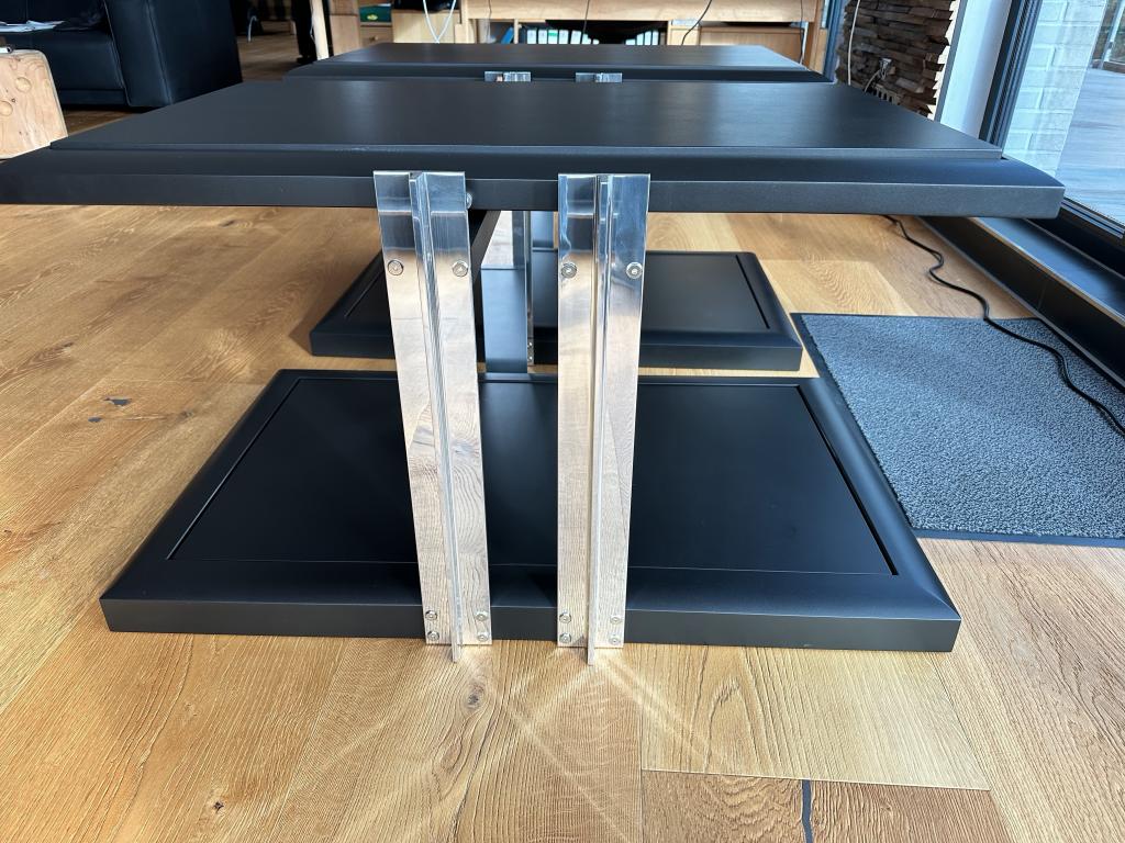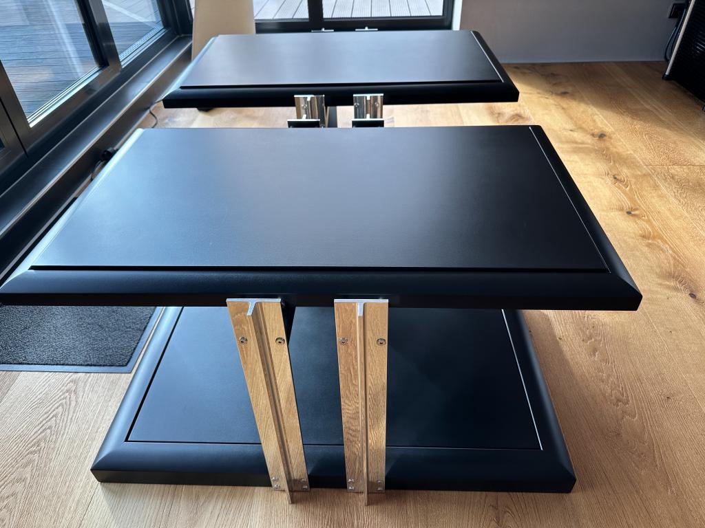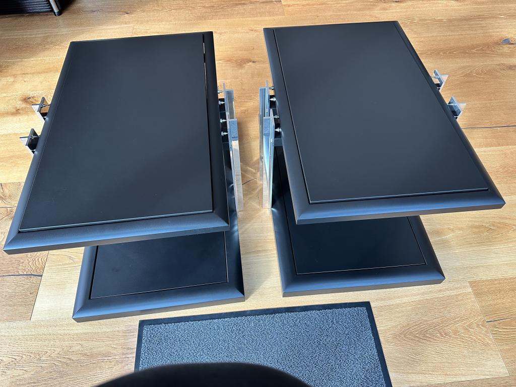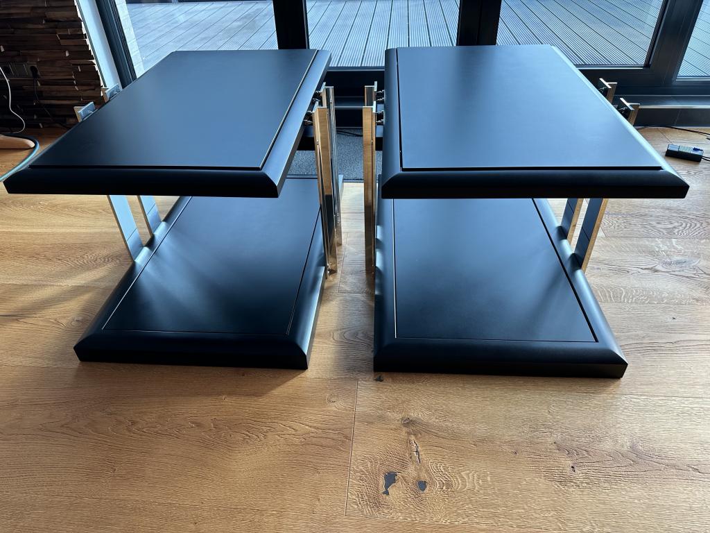 Custom-made Pagode Master Refernce Racks Ausführung Heavy Duty für je zwei Endstufen bis 100Kg pro Stück, wie z.B. MBL 9011. BHT: 64x58x99cm. Körper mattschwarz, Seitenteile hochglanz silber poliert. Wegen Umstellung der Anlage zu verkaufen.