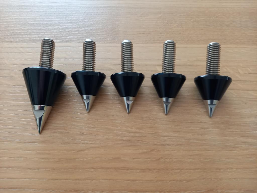 Komplettes Zubehör inkl. 4 Spikes in der Höhe von 38 mm. Originalhöhe 62 mm für Nahfeldhörer unter 3 Meter.