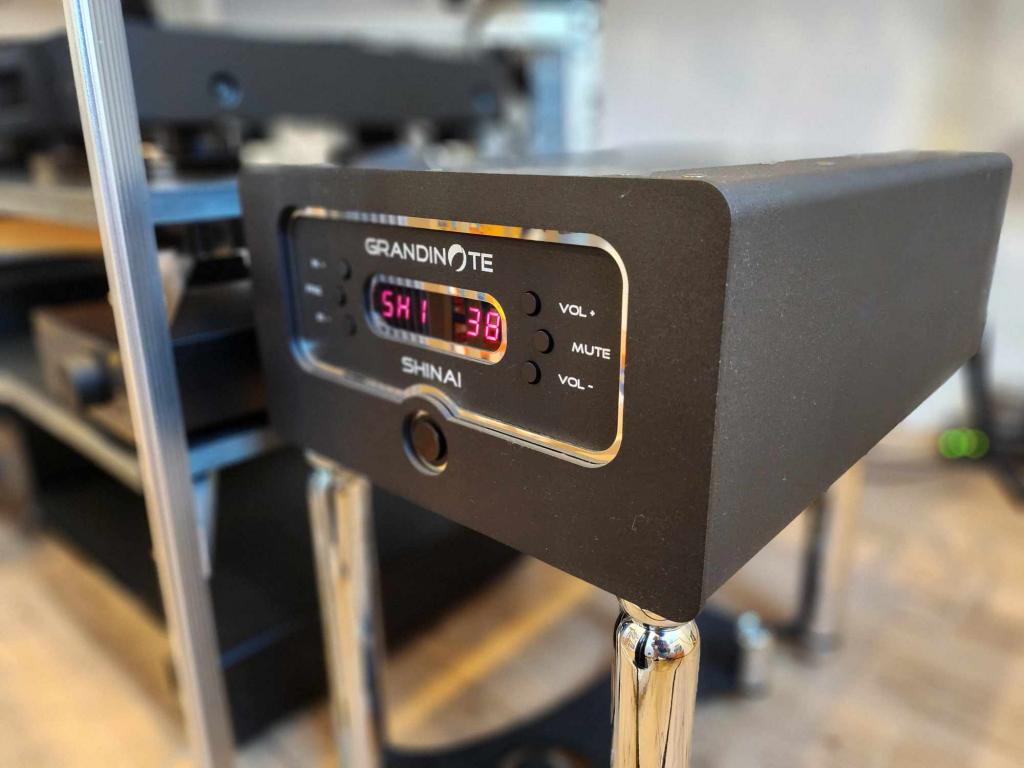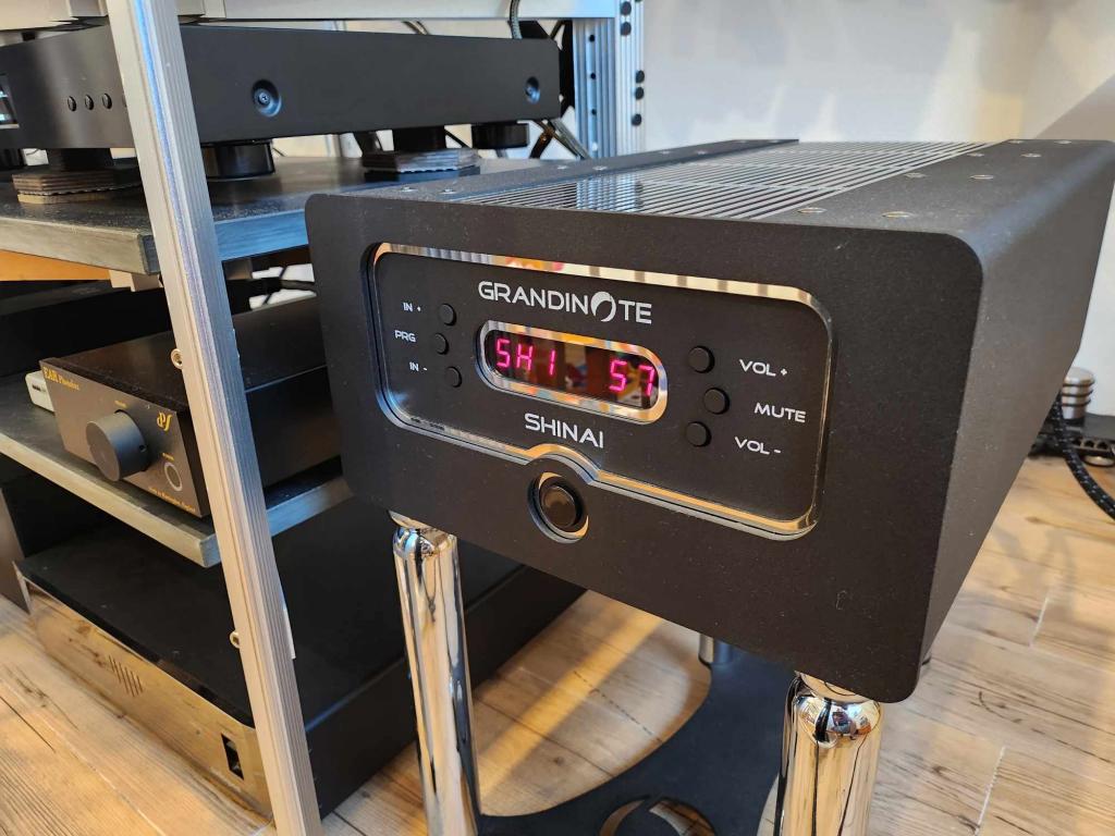 Grandinote Shinai Class A, Magnetosolid Technologie, 37 Watt echt symmetrisch (benötigt 2 Stromkabel), 2x RCA und 2x XLR Anschlüsse.