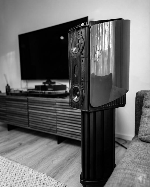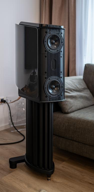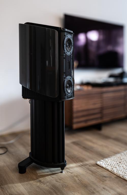 A Feast for the Eyes: The Mojo S is a genuine piece of designer furniture. One simply never tires of admiring the detailing and massive build quality. The bespoke lacquer finish is particularly stunning: depending on the light, the colour shifts playfully between a deep black, elegant grey, and a subtle grey-blue. It is as much a joy to behold as it is to hear.