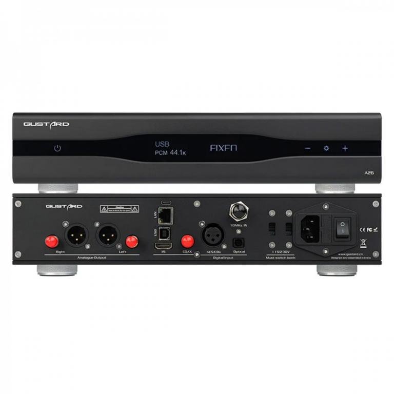 Gustard unveils with the A26 a high-end DAC, as powerful as versatile. It is based on a high quality architecture, using in particular a dual AK4499EX DAC associated with a AK4191 modulator and a USB XMOS XU216 interface allowing a faithful and rich sound reproduction. It also supports high-resolution audio streams up to PCM 32bit 768kHz, DSD512 and MQA from its USB, I2S and LAN inputs.