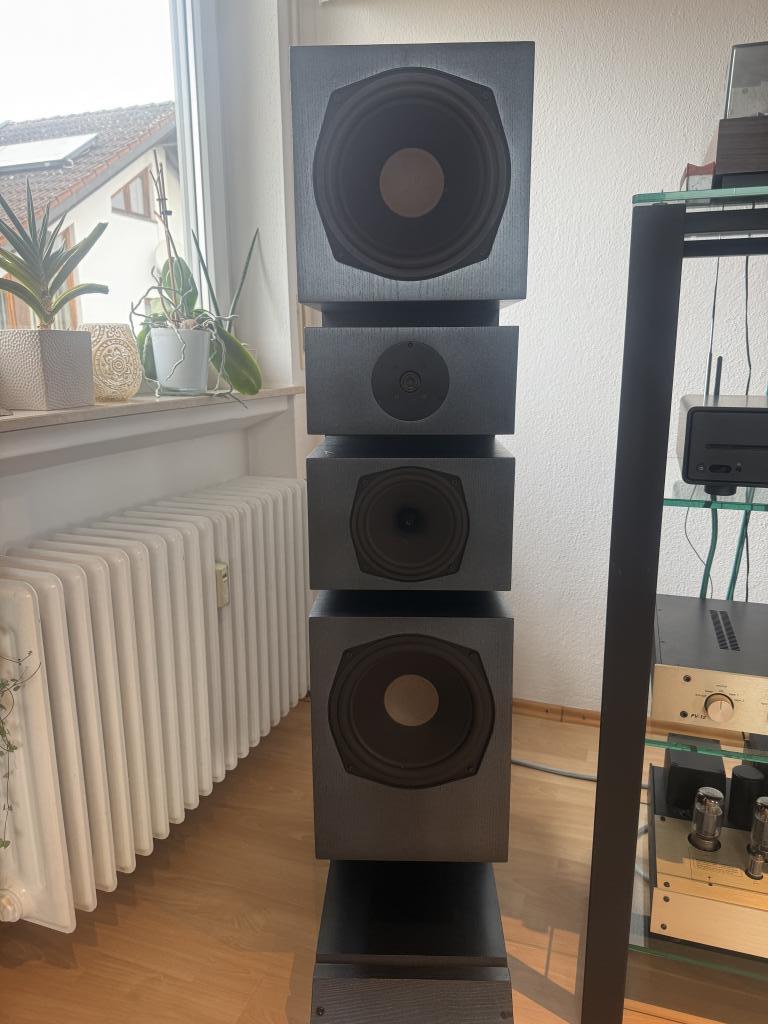 Ich biete hier ein sehr gut erhaltenes Paar „Lyra“ der Firma HGP aus Passau an - handgefertigte High-End Lautsprecher aus einer limitierten Serie, die nur in kleiner Stückzahl produziert wurde. Es handelt sich um die Exemplare Nr. 48 und 49.