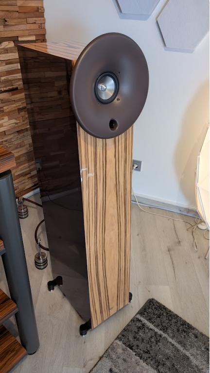 • Bass: Ein massiver 10-Zoll-Aluminium-Tieftöner von SB Acoustics im geschlossenen Gehäuse, sorgt für einen Tiefgang bis hinunter zu 30 Hz – druckvoll, präzise und tiefschwarz.