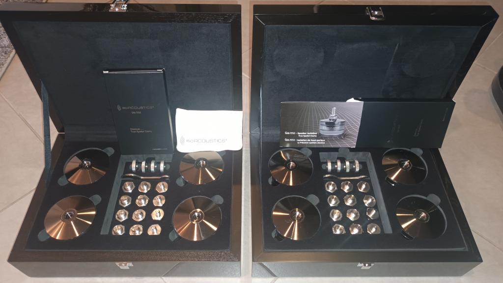 IsoAcoustics Gaia Titan Rhea, set of 4+4 anti-vibration acoustic isolators, maximum load capacity 190 kg for a set of 4 feet per speaker.