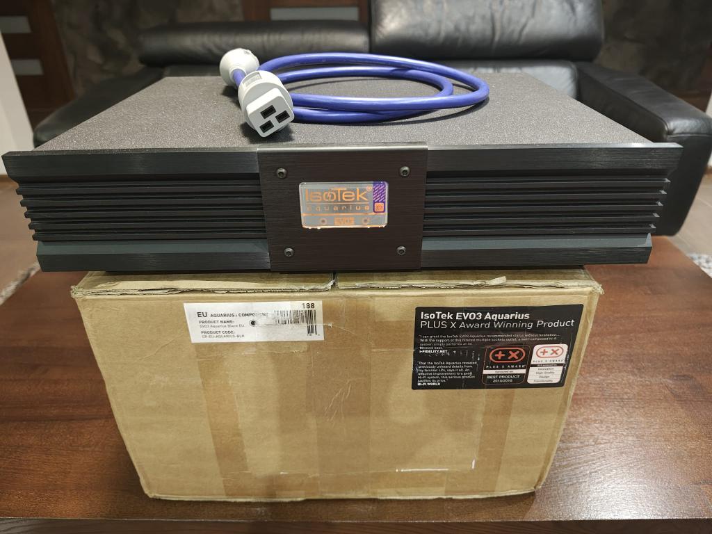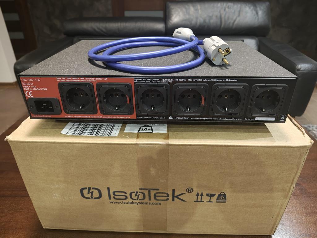 Power conditioner in perfect condition, in original packaging and with a 1.5m C19 Isotek Premier cable. Black. 50% off retail price. https://www.theabsolutesound.com/articles/isotek-evo3-aquarius-ac-power-conditioner