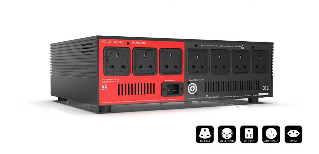 -3 unabhängige Hochstrom-Ausgänge für Leistungsendstufen, aktive Subwoofer, Aktivlautsprecher und TVs etc. (16 A)