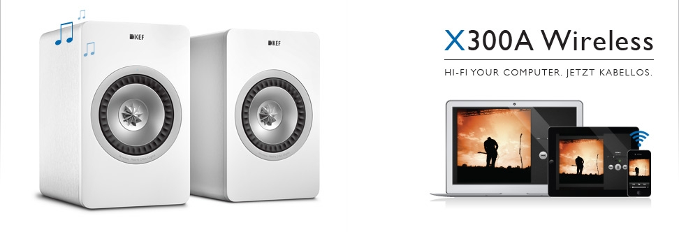 Mit Apple Geräten oder iTunes (auf dem PC) können Sie direkt an die KEF Lautsprecher ihre Musik abspielen. Apple Airplay macht es möglich. Aus dem Computer wird so mit den KEF X300A-Wireless eine Hi-Fi-Anlage.