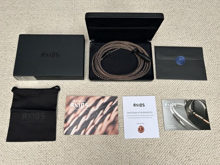 The cable comes with all original parts and deliverables: the original box, a Kimber bag, a certificate of authenticity, a flyer, a product info card and the original envelope with an Axios seal from Kimber.