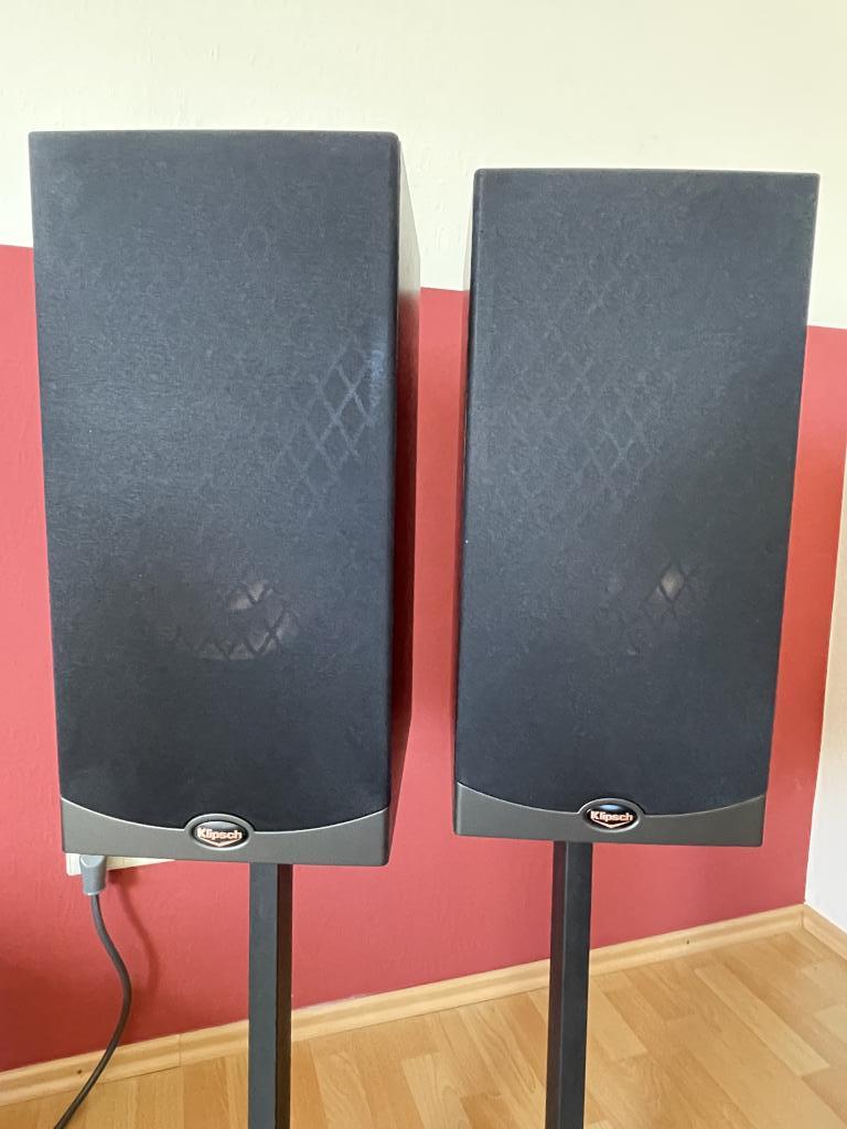 Zum Verkauf steht ein Paar Kompaktboxen aus dem Hause Klipsch. Sie eignen sich hervorragend als Surround-Boxen im Heimkino-Set, aber auch als Frontboxen in kleineren Räumen. Die Belastbarkeit liegt bei 150 Watt und 8 Ohm. Die auf den Fotos abgebildete Lautsprecherständer sind Bestandteil des Angebots. Versand ist nur nach Absprache möglich, da keine komplette OVP vorhanden ist.