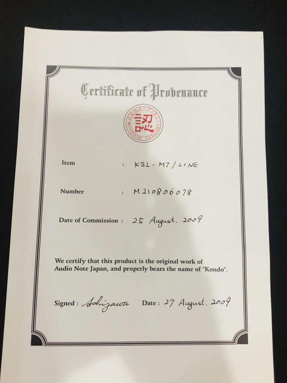 For sale a Kondo KSL M7 Line preamp in very good conditions. Date of commission 2009 as per certificate. Comes with original box. No power cord. Free shipping worldwide at my asking price. Thanks for looking.