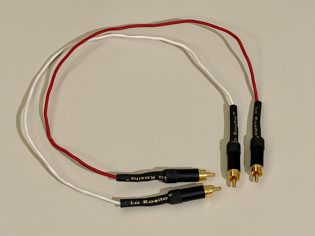Ich biete ein technisch und optisch makelloses RCA Interconnect-Kabel an von La Rosita mit der Bezeichnung „Silver-Silk-Cotton SolidCore Interconnect RCA“.