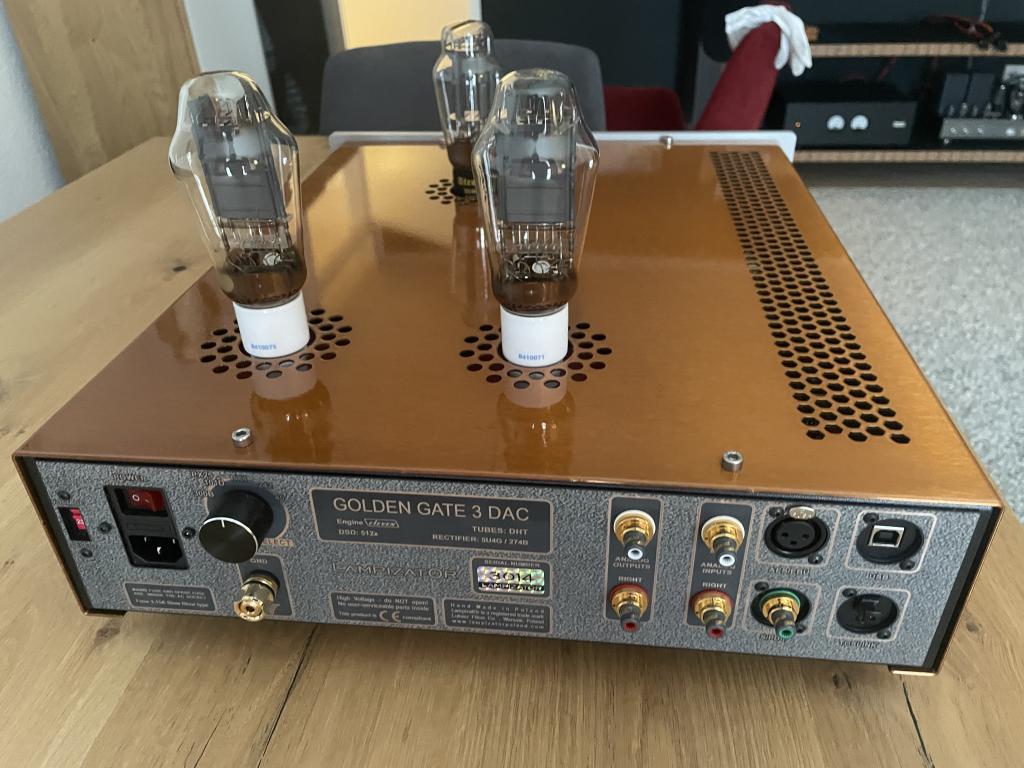 Ich biete einen neuwertigen Lampizator Golden Gate 3 SE mit Vorstufe an. Er ist ausgestattet mit einer 5U4G und zwei PX4 jeweils von Stradi. Garantie bis 31.10.2027. Der GG3 hat die neueste Engine Eleven-P. Fernbedienung und Flightcase vorhanden, optisch und technisch einwandfrei. Versand oder Übergabe nach Absprache.