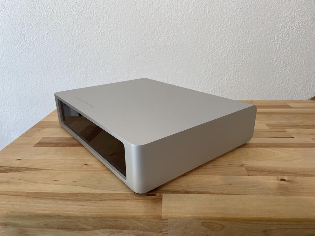 Das aus dem vollen gefrästen Aluminium-Gehäuse ist kompakt und wohnraumfreundlich mit einem schlichten und dennoch ansprechenden Design.