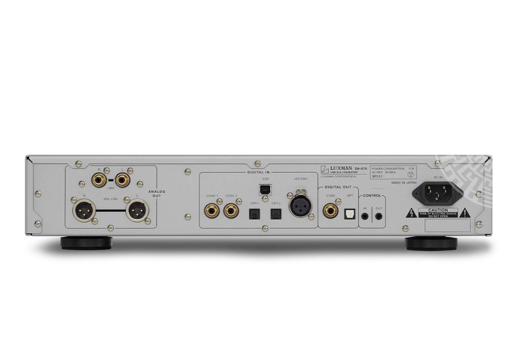 The Luxman DA‑07X is a high-end dual-mono DAC that delivers exceptional digital-to-analog conversion with a natural, analog-like sound. Utilizing two ROHM BD34301EKV DAC chips, it supports PCM up to 768 kHz/32-bit and DSD up to 22.5 MHz, ensuring precise rendering of every musical detail. Its multiple inputs, including USB, coaxial, optical, and AES/EBU, offer flexible connectivity for modern digital sources.