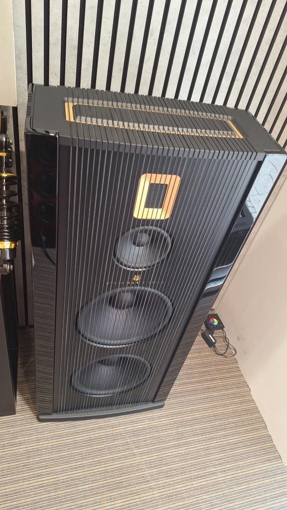 Woofer: Two 30 cm / 12”, anodized aluminum cone, vented double magnet with copper ring, 75mm / 3” four-layer voice coil, molded aluminum basket