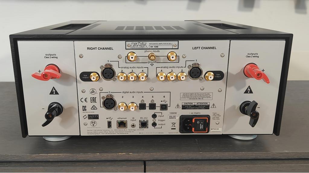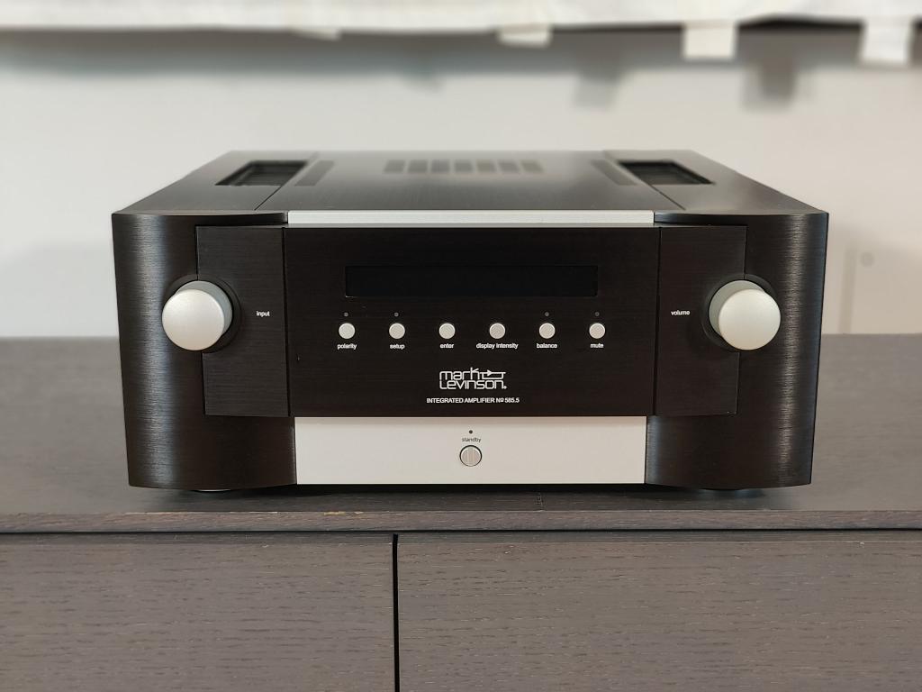 Mark Levinson 585.5 in perfect working condition and without any trace of usage. In my opinion it is one of the best integrated amps on the market: powerful, transparent with great prat and musicality. It's equipped with a very good dac and and awesome and fully adjustable class A phono section (MC/MM). Comes complete with remote, manual, accessories and original packaging. Bought (second-hand) from a renowed shop in Sweden (invoice available but no warranty left). Retail price 23500 euros. 230v. Paypal is possible at buyer expense.