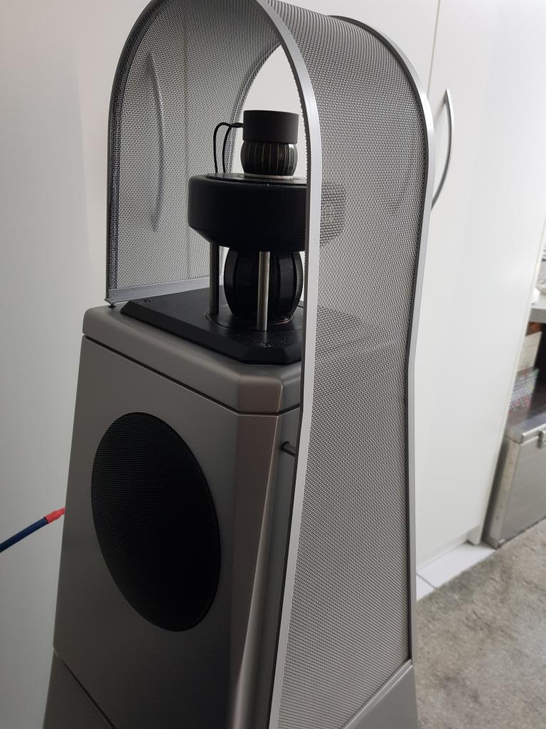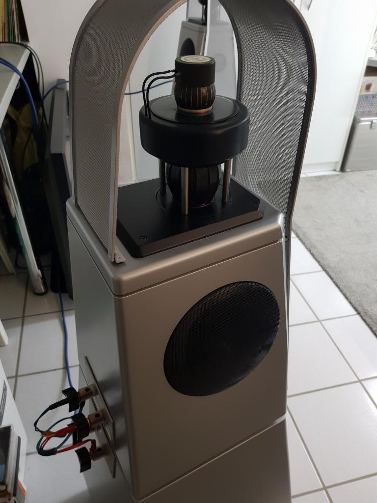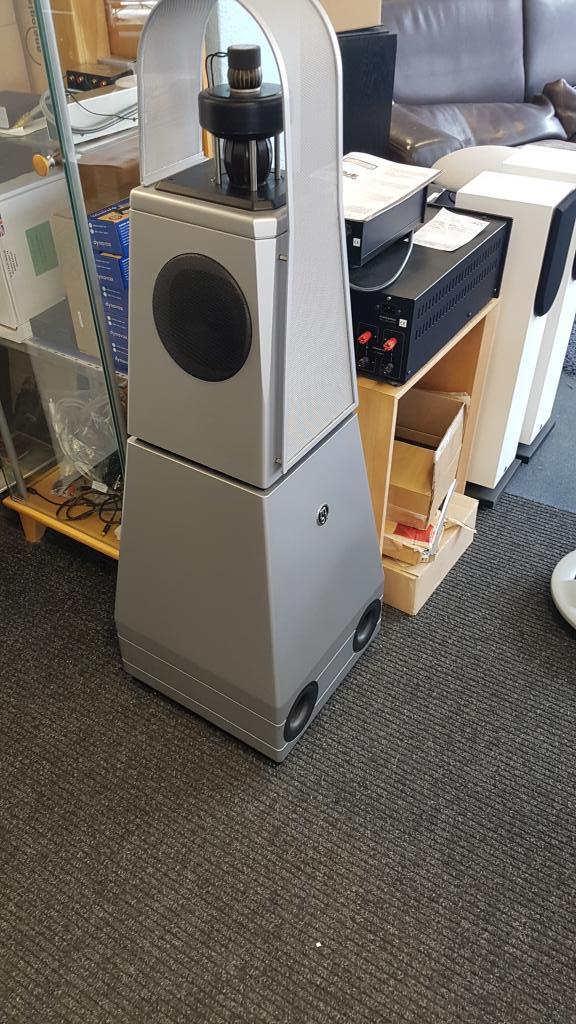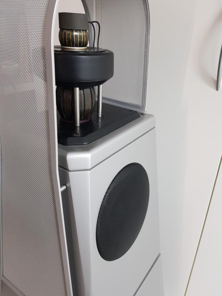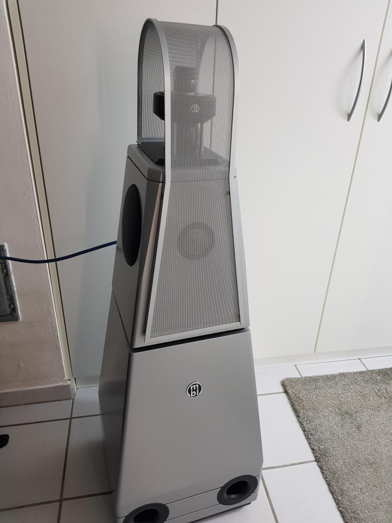 Radialstrahler Paar bestehend aus je einem Basslautsprecher und je einem Mittel- und Hochton-Lautsprecher in Radialtechnik, heißt: Der MT/ HT spielt 360 Grad Musik ab.
