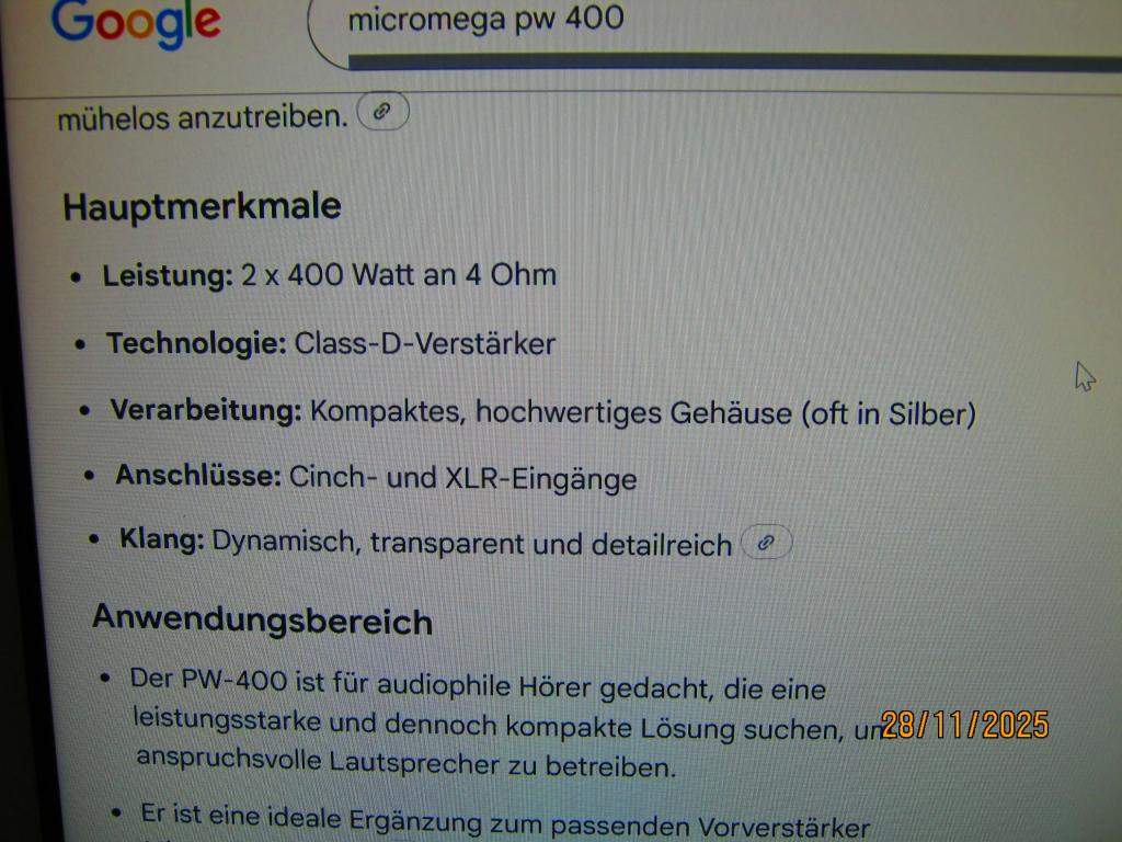 wegen überbestand,herausragende,endstufe,in neuzustand!ca.50std.,benützt..wenn,überhaupt!!dass,beste,und,grösste,was micromega,je gebaut hat..überragende,performance!!!mehrfacher testsieger!!!wer mehr wissen will-bei google..oder testberichte schauen..zustand sehr gut bis neu..mit allem zubehör und orginalkatonage..daher versand,mit,dhl kein problem..mit highendigen grüsse. aus,NR.,haushalt,ohne tiere.gern kurzanruf unter 015206905698auch tausch,gegen röhrenverstärker o. hybridverstärker,möglich!!ggf.,mit aufpreis...destiny,yaqin,twinsound,antique sound lab,magnat,vincent o.ä!!