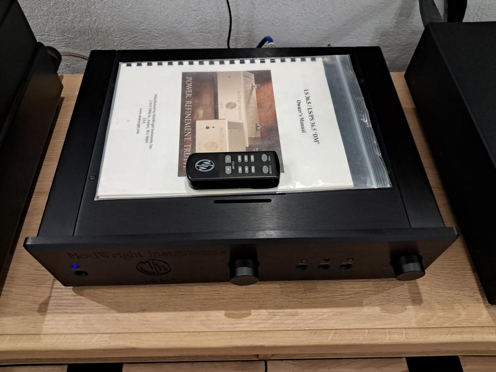 Ich verkaufe einen ausgezeichneten Röhrenvorverstärker Modwright LS36.5. Er ist in einwandfreiem Zustand, wie neu, ohne Gebrauchsspuren. Ich habe die originale Doppelverpackung. Zusätzlich lege ich ein Paar Ersatzröhren 6N30P-EV Sovtec bei. Im Set enthalten sind auch eine Ruby-Gleichrichterröhre und eine ausgewählte TAD GZ34-Röhre. Der Vorverstärker erzeugt keinerlei Rauschen oder Brummen in den Lautsprechern. Ich wohne in Polen und Sie können ihn persönlich bei mir abholen. Ich kann ihn auch für 50 Euro per Kurier in EU-Länder versenden.Er wurde ohne Zigarettenrauch und ohne Tiere verwendet.Paypal +6 %