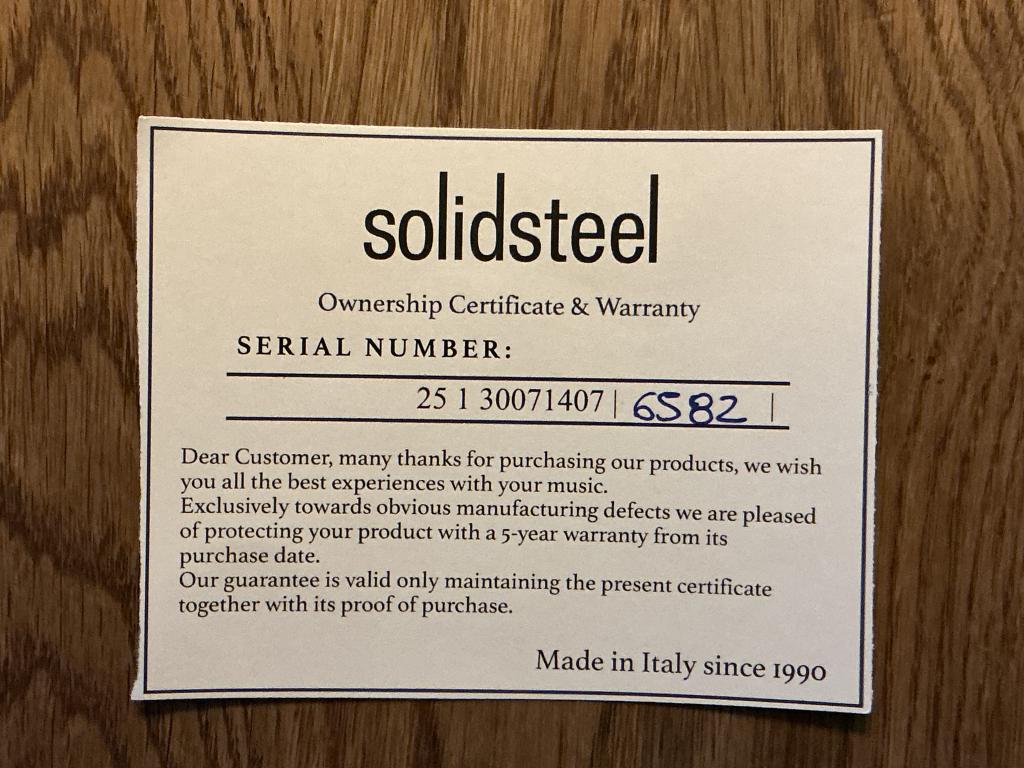 - die Lautsprecherständer von Solidsteel inklusive Unterlegscheiben für den Boden. Die von MoFi angebotenen Ständer sind deutlich zu tief. Der Ständer von Solidsteel liegt Mitte Koax bei ca. 94 cm, was in vielen Fällen oft der Ohrhöhe entspricht.