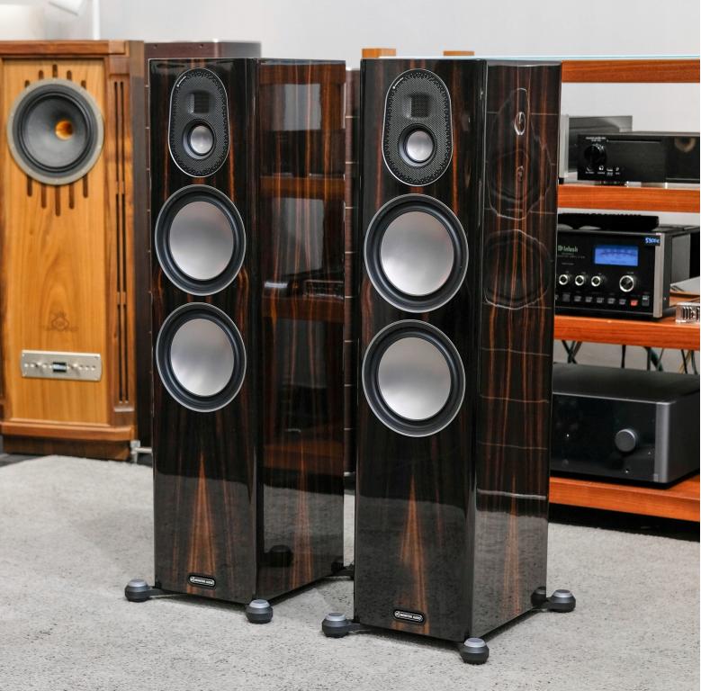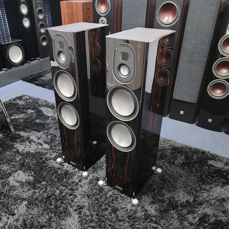 Ein Paar neue Monitor Audio Gold 300 Piano Ebony Standlautsprecher, werkseitig- und originalverpackt, ungeöffnet, mit Luft aus der Fabrik und mit 5 Jahren Garantie.