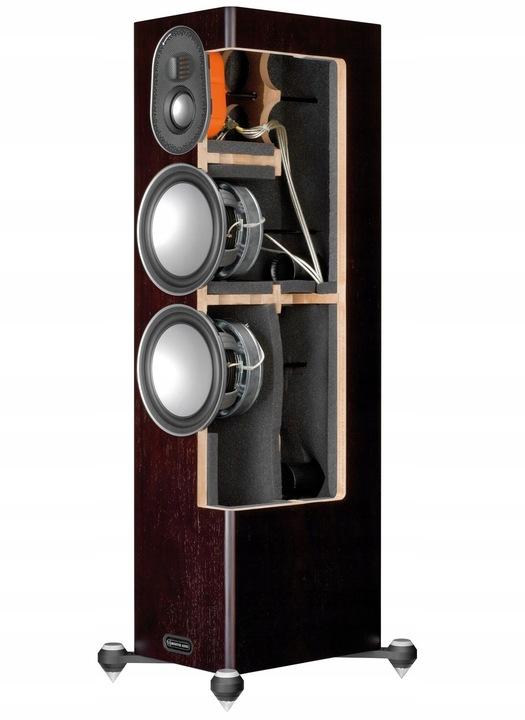 Die Gold 300 ist der Höhepunkt der gesamten Serie. In ihrem großen und wunderschön verarbeiteten Gehäuse befindet sich ein 2½" (64 mm) C-CAM-Mitteltöner mit einem MPD-Hochfrequenzwandler darüber. Unterhalb des Mitteltöners läuft ein Paar 8" (203 mm) RDT II-Tieftöner in einer echten Drei-Wege-Anordnung zu Spitzenleistungen auf.