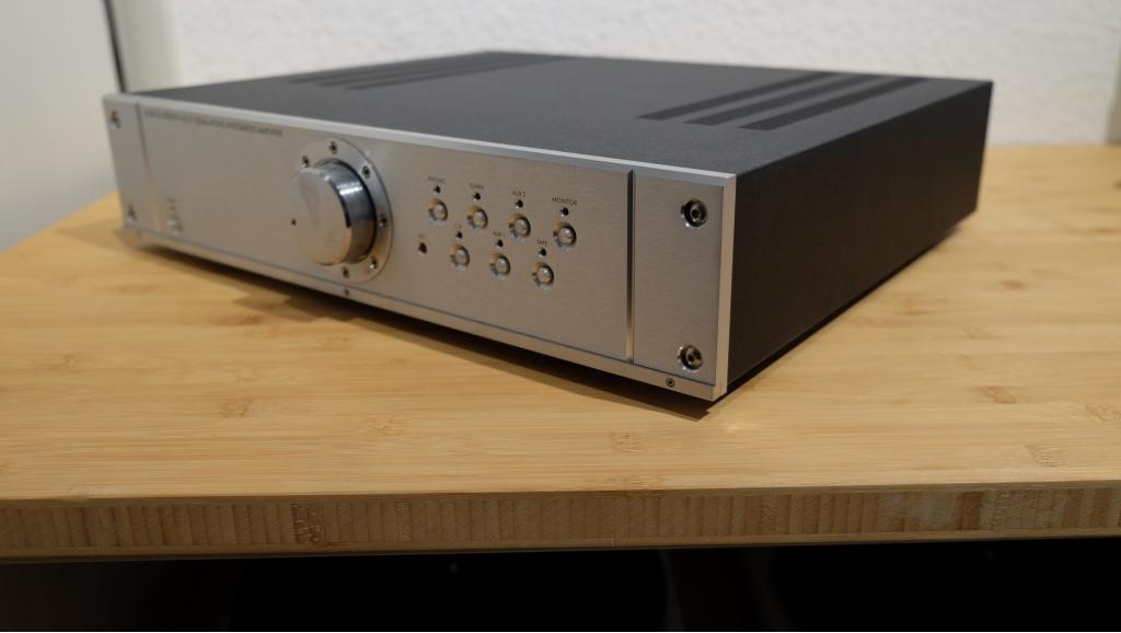 Die Vorverstärkersektion biete insgesamt fünf Line-Level-Eingänge, sowie eine (hochwertige) Phonostufe, welche mittels einer Taste auf der Rückseite sogar zwischen Moving-Magnet- und Moving-Coil-Betrieb umgeschaltet werden kann.