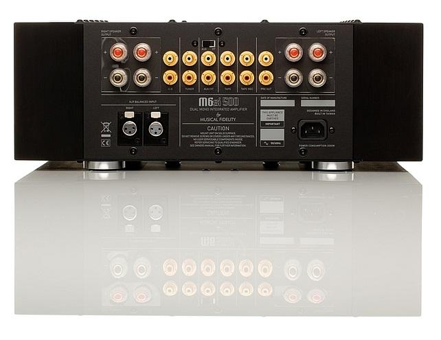 Die Klirrwerte des M6si500 sind mit maximal 0,08% extrem niedrig, selbst bei 30 kHz bewegen sich die Werte noch um 0.02%. Über einen Vorverstärker-Ausgang kann der M6si 500 bequem durch die Endverstärker von Musical Fidelity ergänzt werden.