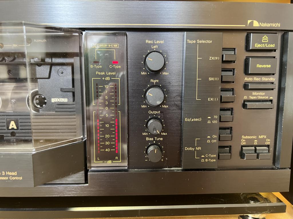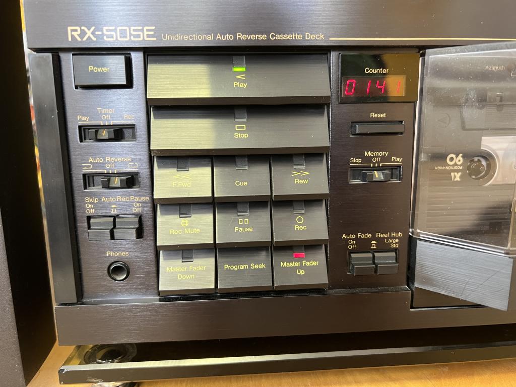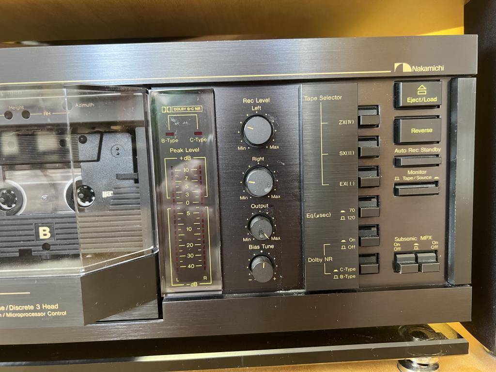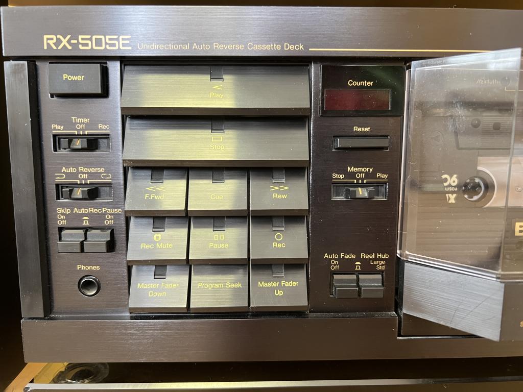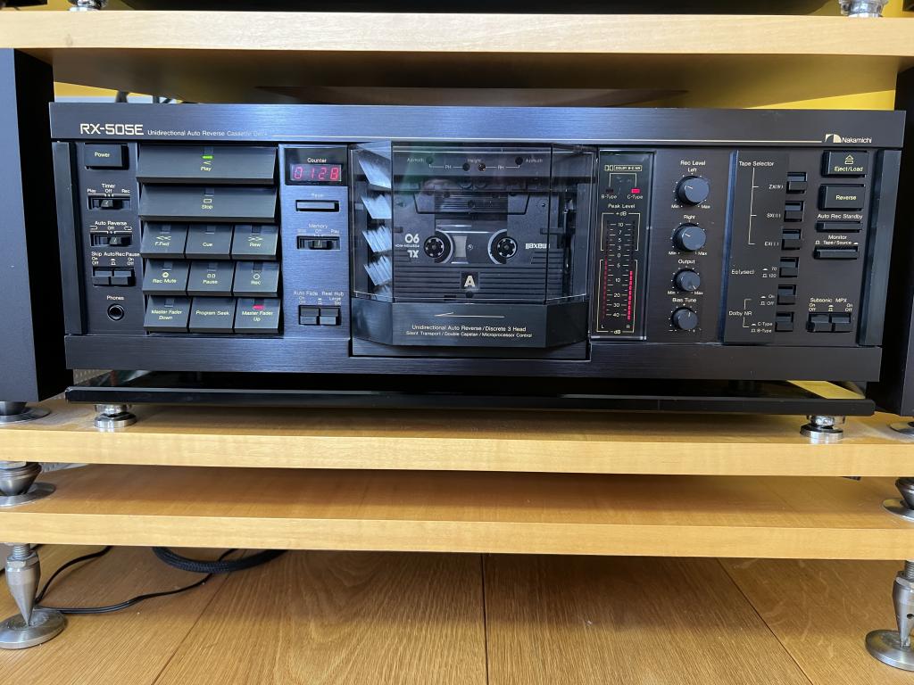 Nakamichi RX-505E aus Privatsammlung. Optisch steht das Deck für sein Alter einwandfrei da. Es sieht wirklich fast wie neu aus. Die Tasten haben gar keine Gebrauchsspuren. Das ist bei einem solchen Kassettendeck unheimlich selten. Da ich kaum noch Kassetten höre, löse ich schweren Herzens meine Sammlung an Nakamichi-Decks auf. Davon ist das RX-505E das Schmuckstück, da es optisch eine glänzende Figur macht und den m.E. coolsten (und vernünftigsten) Wendemechanismus der Welt hat. Das RX-505E wurde im Februar 2026 von Behringer electric repariert und gewartet. Dabei wurden die Riemen der Transportmechanik, der Wendemechanik und des Idlers erneuert. Bewegte Teile wurden gereinigt und geölt bzw. geschmiert. Zudem wurden die Köpfe neu justiert, die Pegel wurden neu eingemessen und alle Funktionen wurden fachmännisch getestet. Die Reparatur- und Wartungsrechnung (über 600 €) mit allen Details zu den Arbeiten wird selbstverständlich mitgeliefert. Das RX-505E funktioniert tadellos - wie neu.