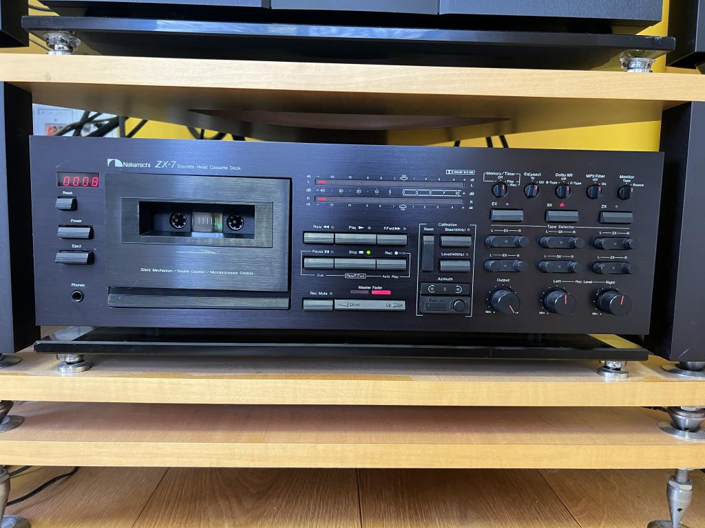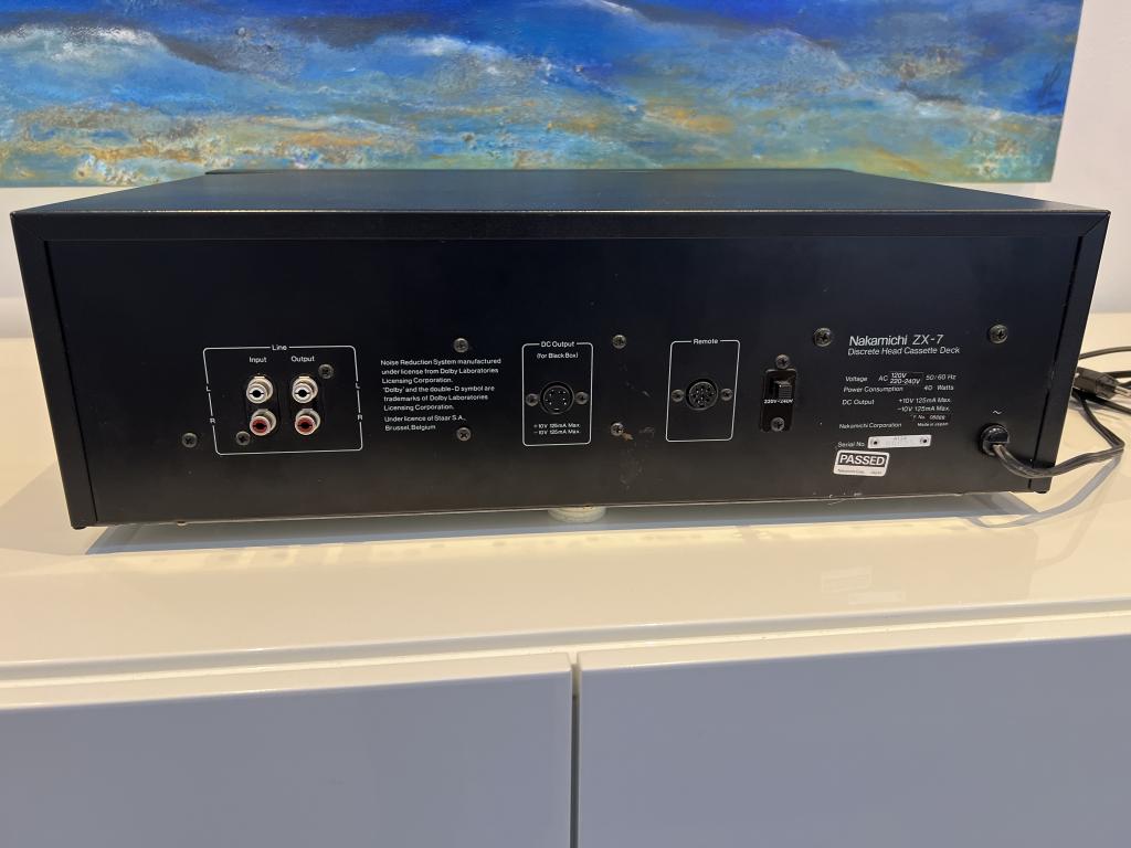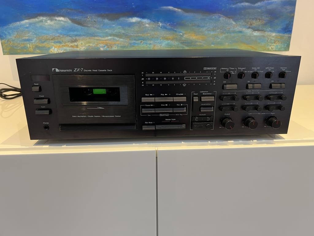 Nakamichi ZX-7 aus Privatsammlung. Da ich kaum noch Kassetten höre, löse ich meine Sammlung an Kassettendecks auf. Das ZX-7 wurde Ende 2020 für 975 Pfund von Nak Central generalüberholt und seitdem für den Funktionserhalt benutzt. Das ZX-7 funktioniert tadellos - wie neu. Bilder von der Generalüberholung gibt es auf Anfrage. Ein Video des funktionierenden Geräts ebenfalls.