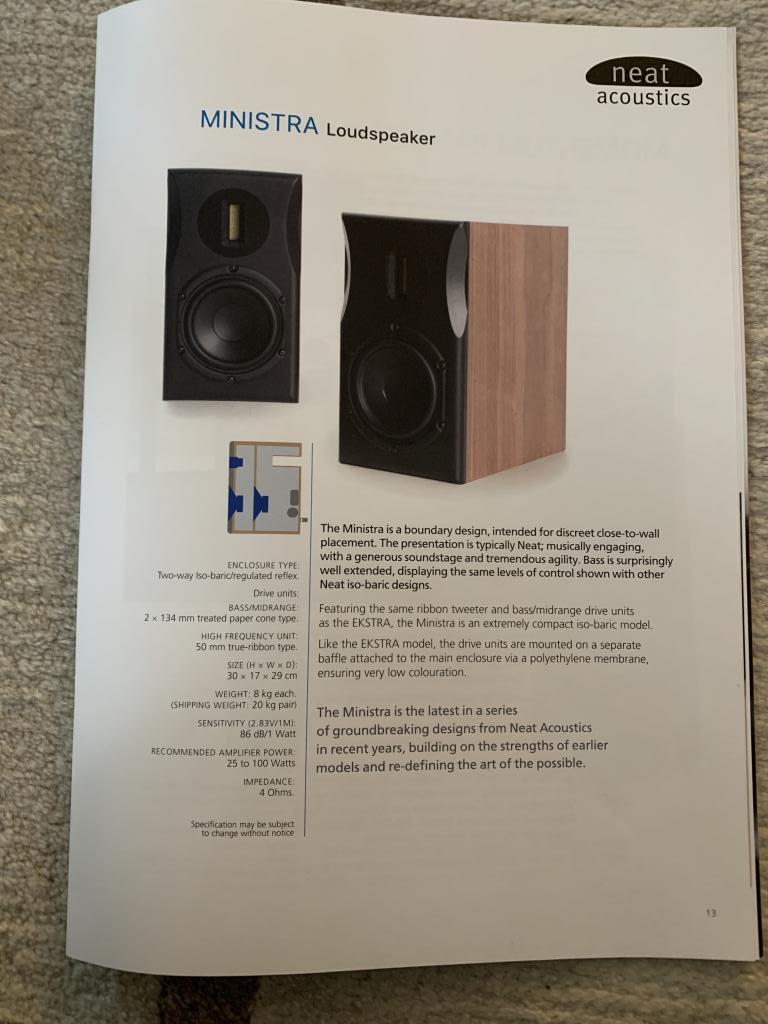 NEAT Acoustics Ministra Highend-Lautsprecher Paar in sehr schönem Echtholzfurnier Walnuss inkl. Abdeckungen und OVP aus tierfreiem Nichtraucherhaushalt in neuwertigem Zustand günstig zu verkaufen. Die Neat Ministra sind Kompaktlautsprecher aus der aktuellen Strata-Serie die mit ihrem isobarischen Prinzip einen tiefen und sauberen Bass besonders bei wohnraumfreundlicher, wandnaher Aufstellung erreichen und in Kombination mit dem Bändchen-Hochtöner exzellent klingen - aber der Kenner weiß dies ohnehin. Die technischen Daten sowie eine ganze Reihe exzellenter Tests findet man im Netz.
