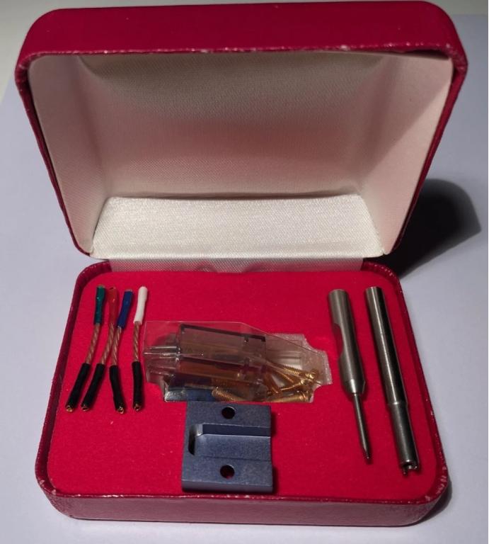 Die unbenutzen Headshell-Kabel aus Sauerstoff freiem 6N-Reinkupfer und der Halbzoll-Adapter gehören zum Lieferumfang.