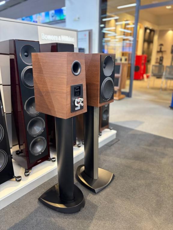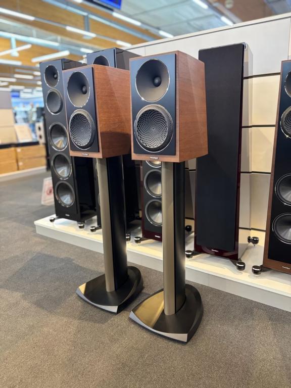 Wir verkaufen aus der Ausstellung ein Paar (2 Stück) Paradigm Founder 40B Kompaktlautsprecher in Walnut mit den passenden Stands J29v2.