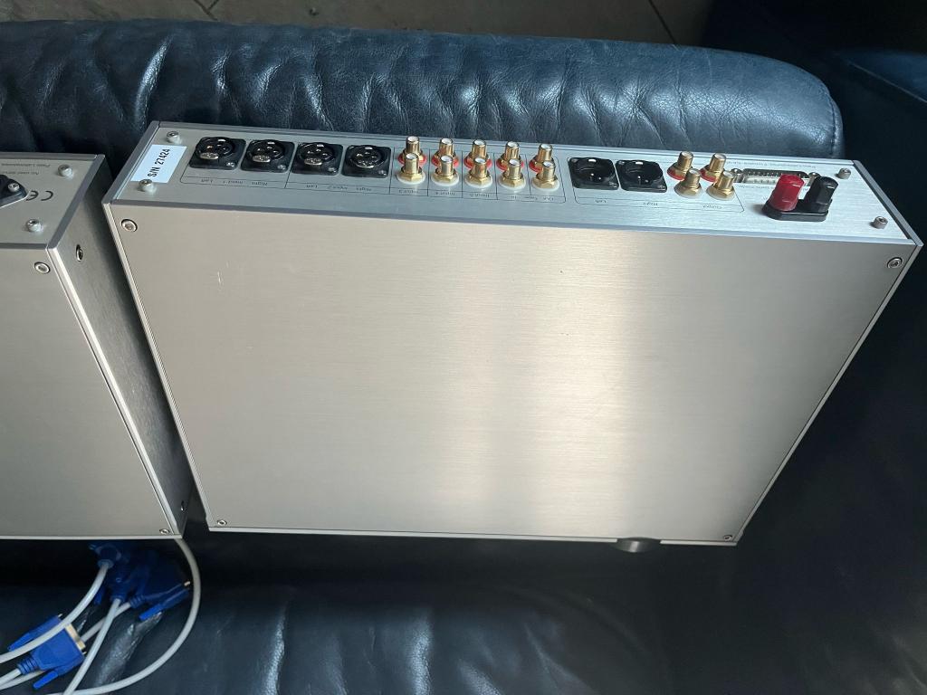 Exzellent klingender und sehr aufwändig gebauter Phonoverstärker mit zwei MC-Eingängen. Externes Netzteil. Line-Vorstufe mit vielen Cinch und XLR-Ein- und Ausgängen. Mit Fernbedienung und OVP. Dieses Paket ist schon weit am oberen Rand und lässt nicht mehr weit überbieten.
