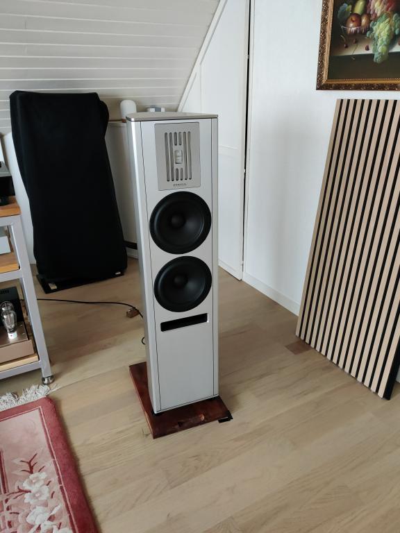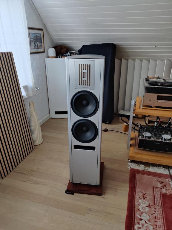 For sale are my fantastic Piega CL90X speakers. They are in very good condition. Original box and original feet are available. The speakers weigh 75 kg each. The sound is big and powerful with fantastic Piega coaxial midrange and tweeter and 2x 220 mm bass. They are easily driven at 92 dB. You can drive them with 2x 15 watts without problems.