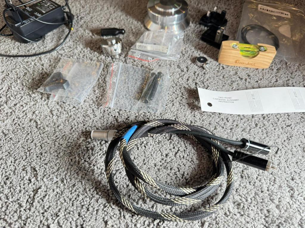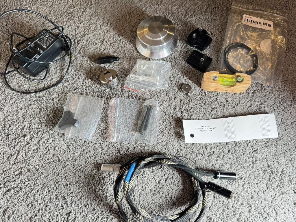 Im Lieferumfang enthalten ist: Pro-Ject Signature 10, Tonarm, Zubehör wie auf den Bildern zu sehen ist und die originale Holzkiste.