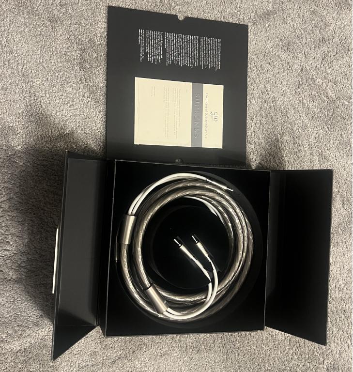 Ich verkaufe ein ausgezeichnetes Lautsprecherkabel der britischen Firma QED, das Flaggschiffmodell SUPREMUS mit einer Länge von 2 x 3 Metern. Bananenstecker auf beiden Seiten. Das Kabel ist in sehr gutem Zustand, die Verpackung weist Kratzer auf. Komplettes Set mit Zertifikat.