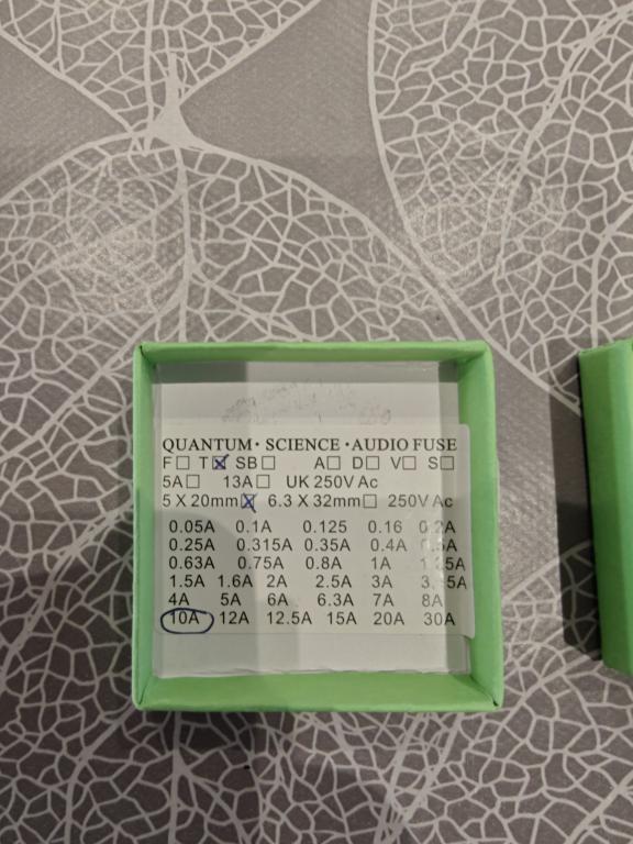QSA (Quantum Science Audio) RED/BLACK High-Level audio fuse 5x20mm Slow-blow 10A 250V.