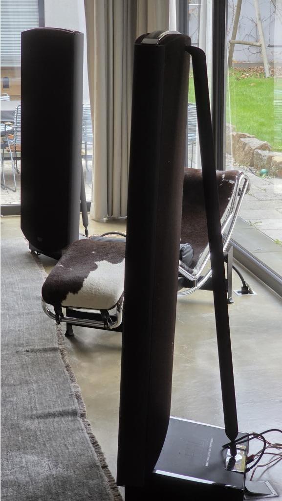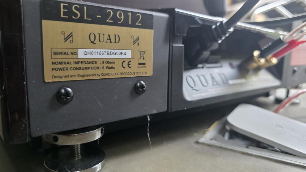 Dies ist der größte aller Quad Elektrostaten, mit sehr tiefem und luftigem Bass und gutem Wirkungsgrad. Exzellente Fertigungsqualität, Neigungswinkel einstellbar, Spikes oder Dämpfer etc. inklusive. Lässt keinerlei Wunsch nach mehr Bass aufkommen - die Klangqualität ist ohnehin überragend, schnell, ansatzlos, tief, ohne jegliches Dröhnen oder Gehäuseklang. STEREO Zitat aus dem Test: "Der aktuelle Quad ESL ist ein elektrostatischer Flächenlautsprecher der Extraklasse – und ein würdiger Erbe der ESL-Legende. Er bietet ein ausgesprochen feines, hochaufgelöstes und plastisches Klangbild von außergewöhnlicher Klarheit und Verzerrungsfreiheit, das sogar verblüffenden Bass und solide Pegeltauglichkeit liefert. Enormer „Haben-wollen-Faktor“. Wirkungsgrad knapp 87dB, also relativ laut, gutmütige Impedanz, kommt daher auch mit kleinen Verstärkern ab 50W gut zurecht. Maße BxHxT: 69 x 147 x 38 cm, können bis ca. 50cm an die Rückwand ranrücken, 1m Abstand ist optimal."