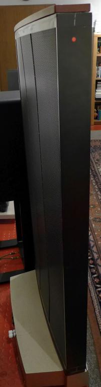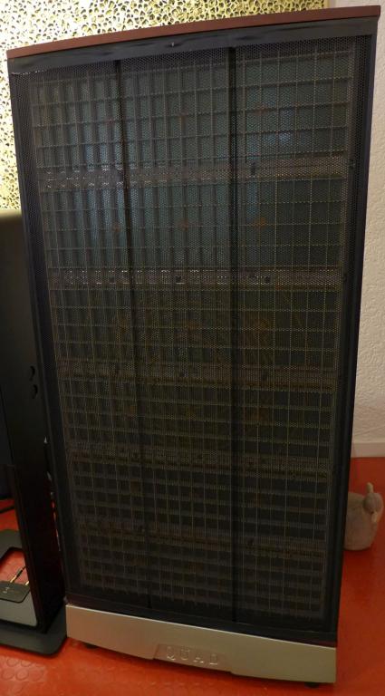 Elektrostatischer Lautsprecher Quad ESL 989, ein echtes Klangwunder, unschlagbarer ESL-typischer Sound, bereits leise spielend sehr bassstark und ausgesprochen feinzeichnender transparenter Klang in allen Frequenzbereichen, etwa 20 Jahre alt, aufwändig vom Fachbetrieb revidiert inkl. neue PP-Kondensatoren, neue Folien, WBT-Anschlüsse, (Rechnungen im Wert von 3.603,60 Euro liegen vor), klangtechnisch neuwertig, 1 Jahr Garantie, Maße 138 cm hoch, 65 cm breit, 28 cm tief inkl. Sockel, Gewicht 28 kg, Verkauf mit Rechnung, können jederzeit Probe gehört werden, Abholung/Lieferung auf Anfrage. Abb. ohne Stoffbezug (Folienschutz), Stoffbezug inklusive.