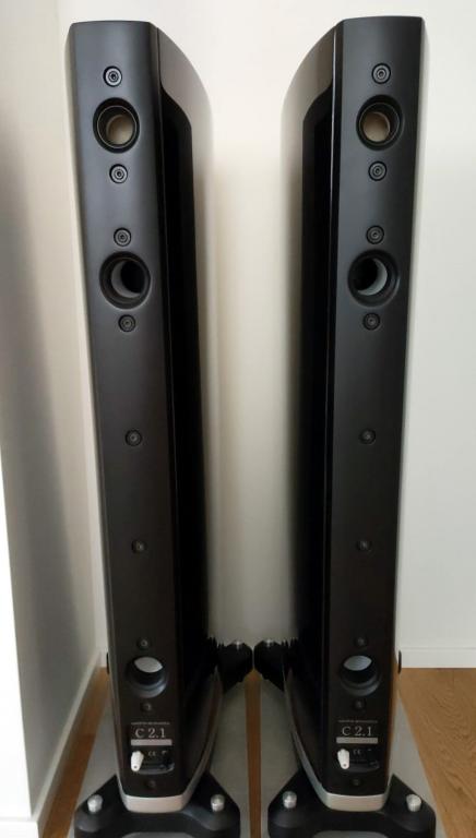 Raidho C2.1 loudspekers in mint condition, only one previous owner, carfully managed and complete with original box. Piano black finishing.