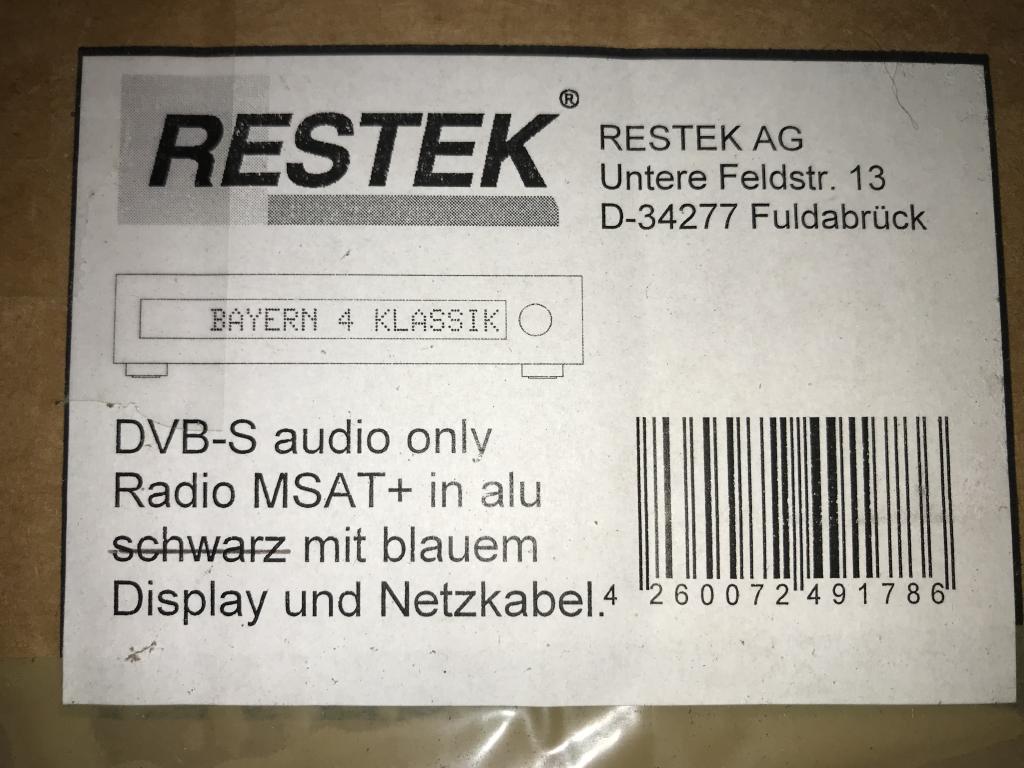 Verkaufe einen RESTEK MINISAT DVB-S2-TUNER - orig. 230 V-Version; sehr guter Original-Zustand ohne letztes Upgrade - alu-silber mit blauer Anzeige; mit System-Ferndienung, BDA und OVP. Gegen Gebot.