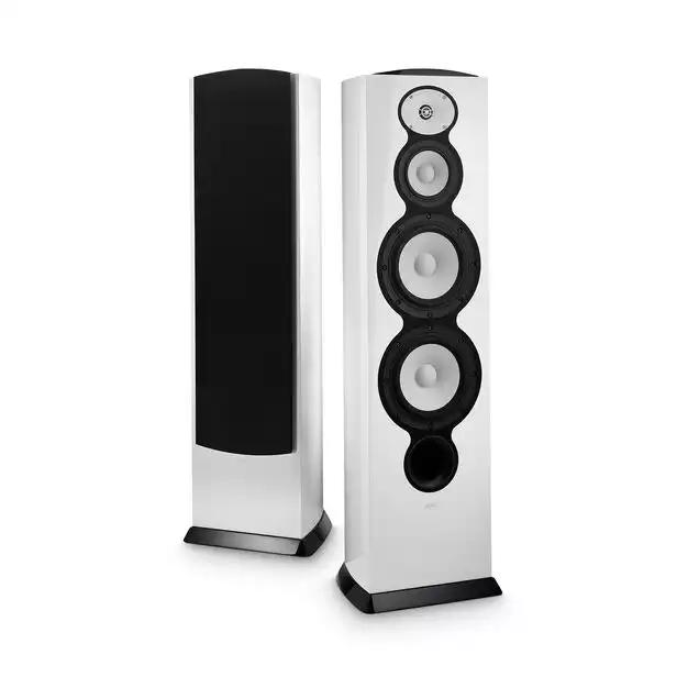 Die neuen Performa BE Lautsprecher kommen in einer Metallic Hochglanzausführung daher, jedes Modell ist in Schwarz, Weiß, Walnuss und Metallic Silber erhältlich. Die Lautsprecherabdeckungen sind magnetisch befestigt.
