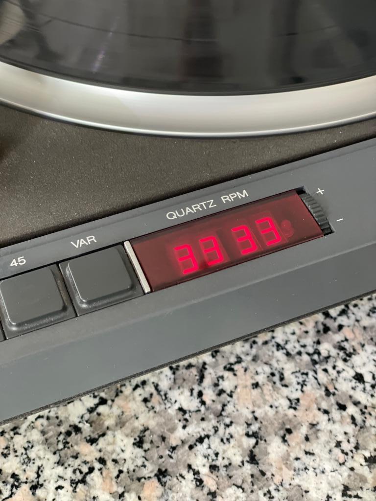 Der bürstenlose, hallkommutierte und direkt antreibende DC-Motor war via Tachogeber und PLL-Servosteuerung phasenstarr an eine Quazreferenz gebunden. Dennoch gab es eine Drehzahlregulierung von ±7 %, und selbst die variablen Drehzahlen wurden quarzgenau gemessen und durch Leuchtziffern angezeigt.