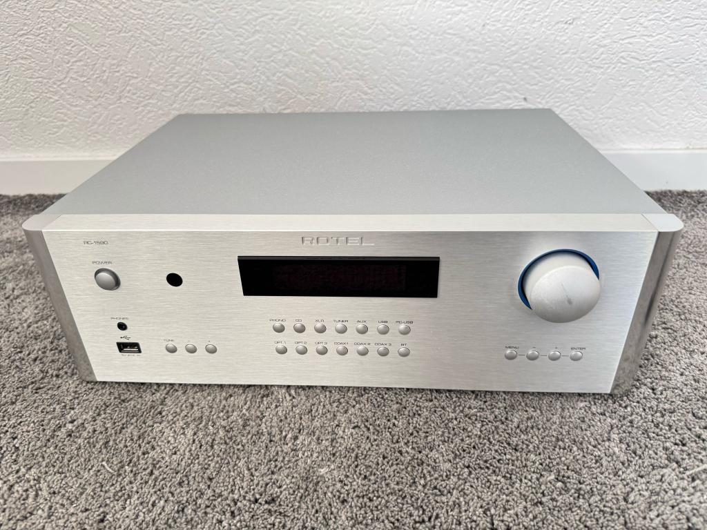 Here we sell an used but mint condition Rotel RC-1590 pre amplifier in silver.