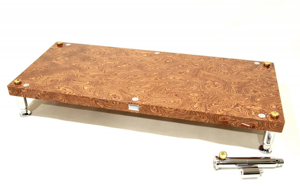 An anti-vibration module table, for four audio devices. The table is two-level, four-legged, with a rectangular base.