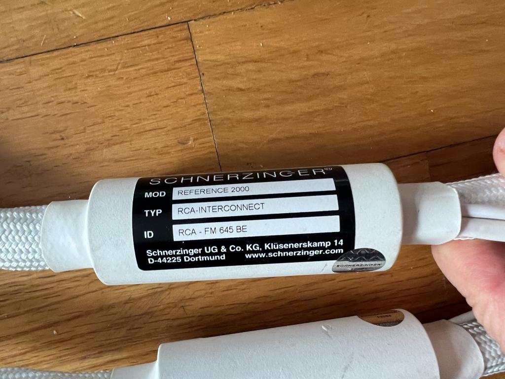 I am offering for sale a pair of Schnerzinger Reference 2.000 RCA interconnect cables in excellent working condition. The cables present minor cosmetic signs of normal use, consistent with careful installation and handling, but are 100% functional and perform flawlessly.