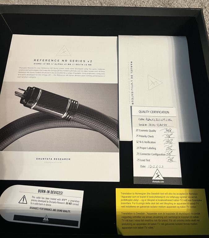 Zu verkaufen: ein ausgezeichnetes Netzkabel der amerikanischen Firma Shunyata Research, Modell Alpha XC. Europäische Version, C-19-Stecker, 1,75 m, v2. Das Kabel ist in einwandfreiem Zustand, wie neu. Komplett im Originalzustand, Originalfotos. Der Preis beinhaltet den versicherten Versand per DPD innerhalb der EU.