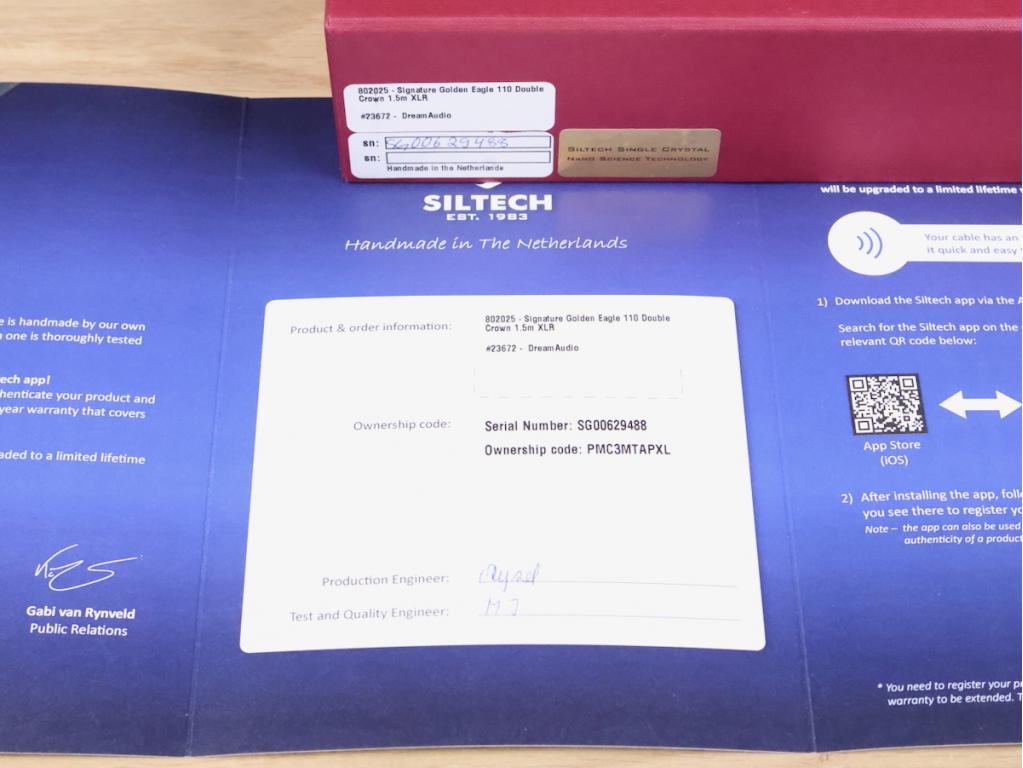 One Siltech Royal Signature Golden Eagle 110 Double Crown high end digital audio AES/EBU interconnect cable with a length of 1,5 metre. It is made with the purest silver Mono Crystal X-tal conductors.